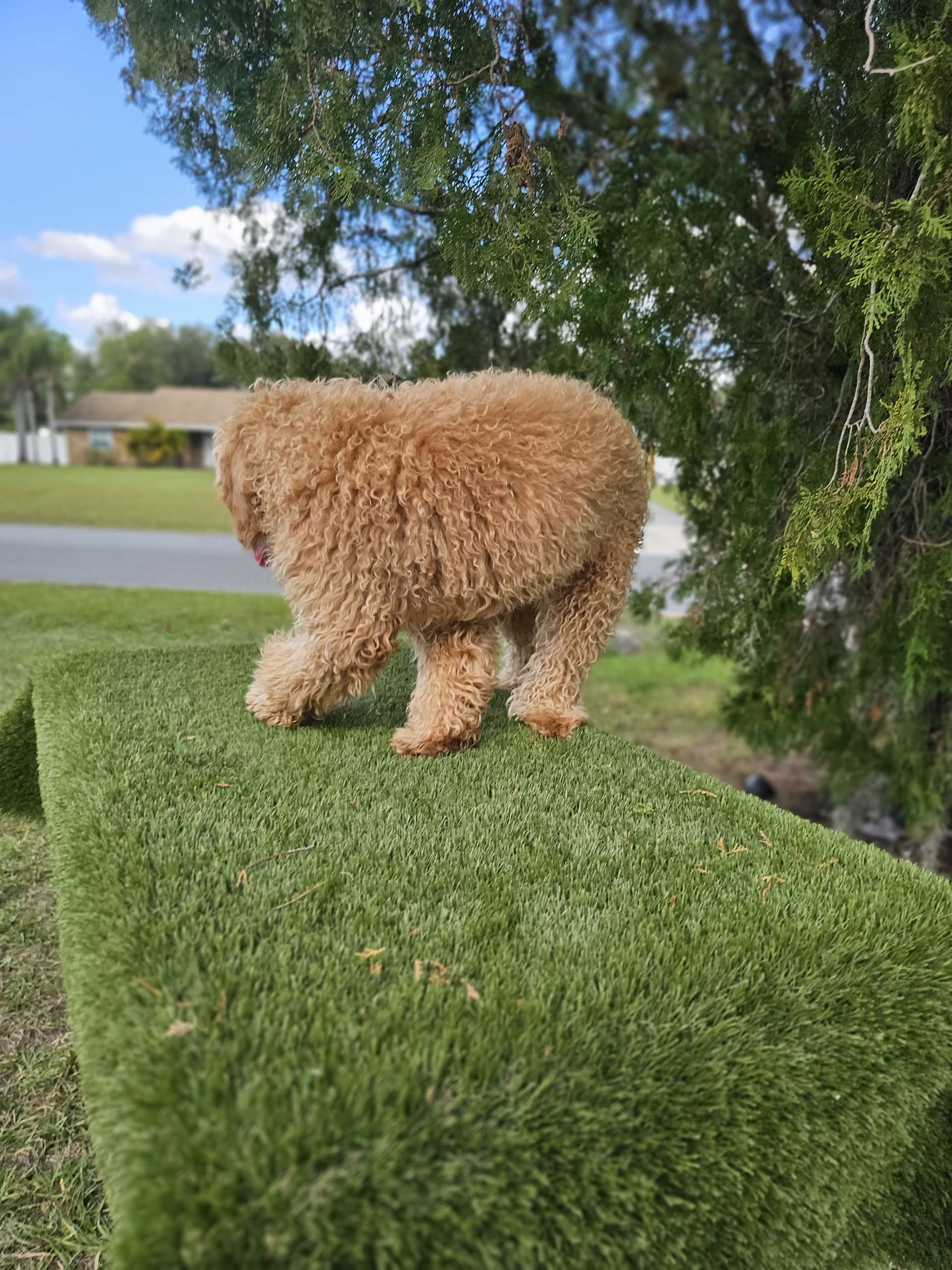 🚀 Goldie Toast is a 7-month-old mini Goldendoodle powered by happiness and zero chill.
