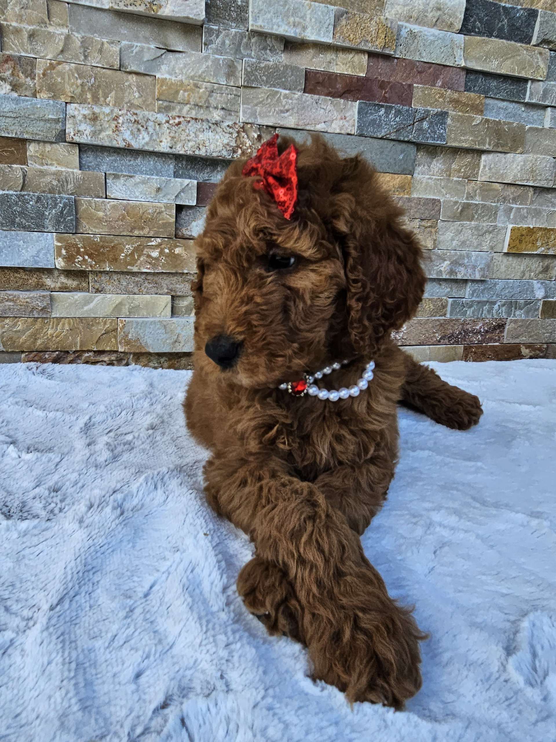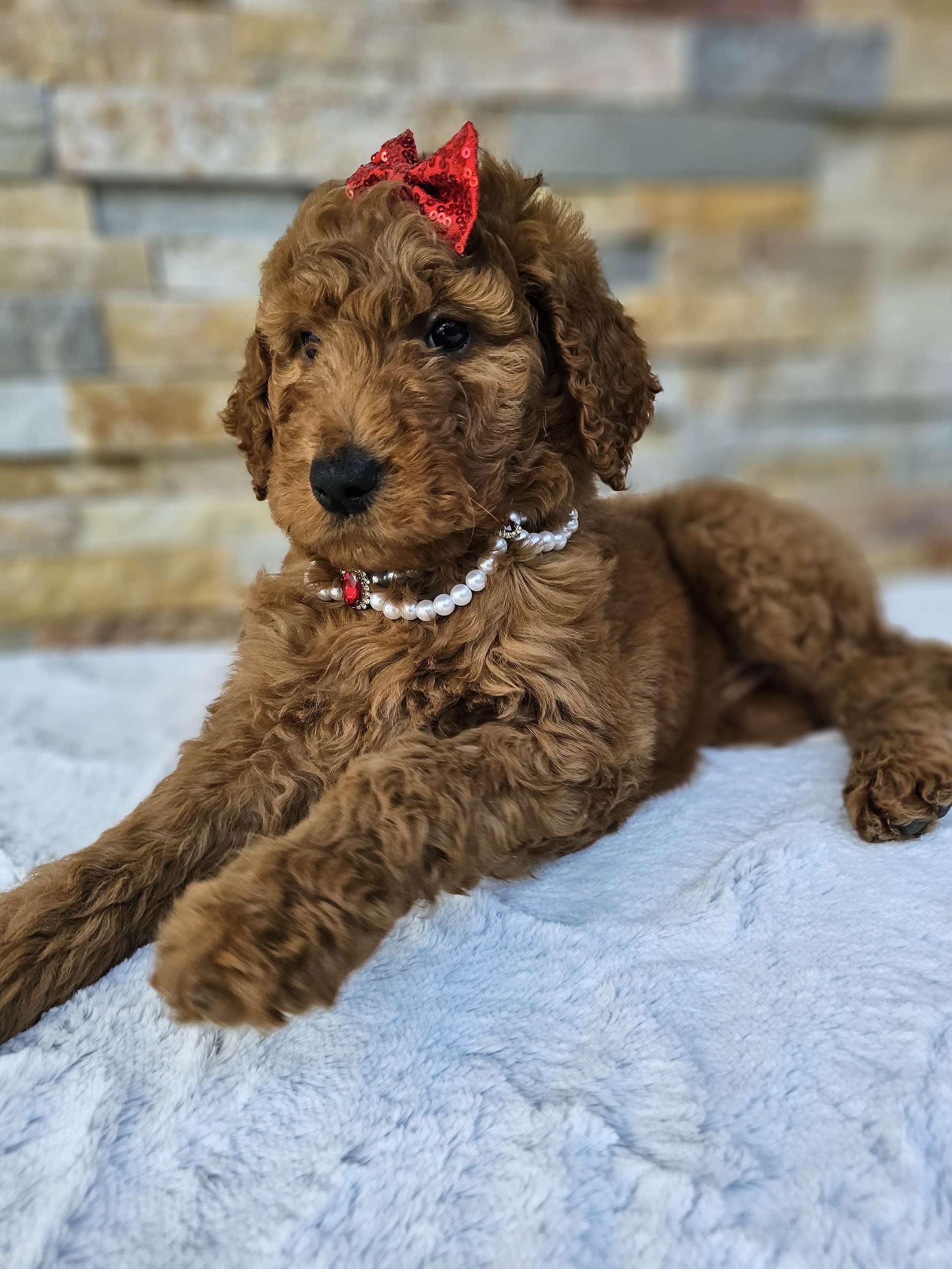 Lady Ruby Luxe es una Goldendoodle estándar hembra simplemente espectacular, con un color caoba intenso y una presencia de realeza total.