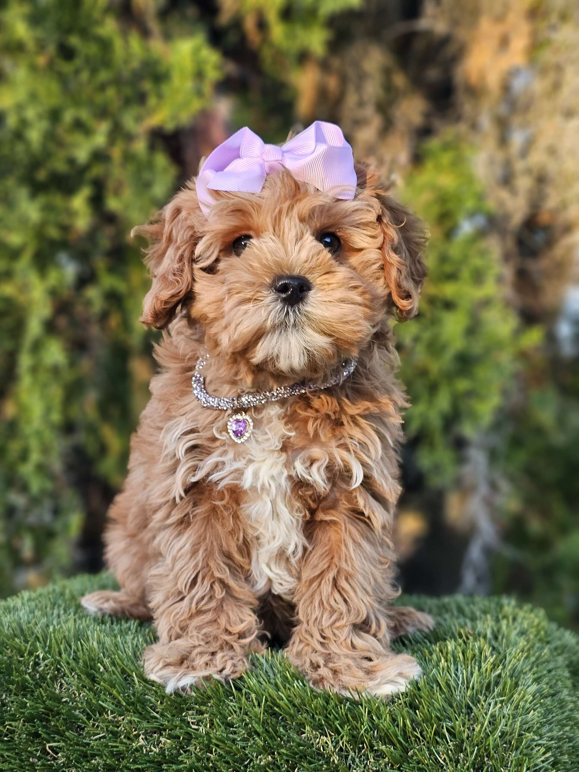Expected to stay under 20 lbs, non-shedding, hypoallergenic, and fully aware she’s adorable.