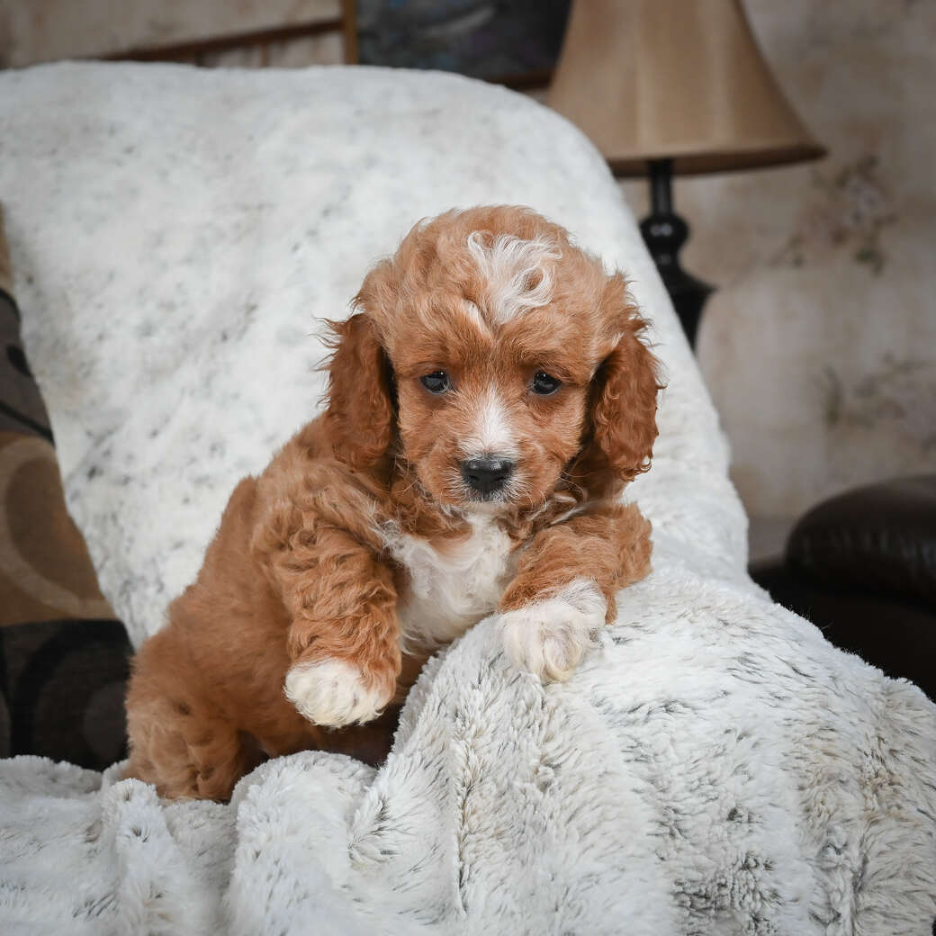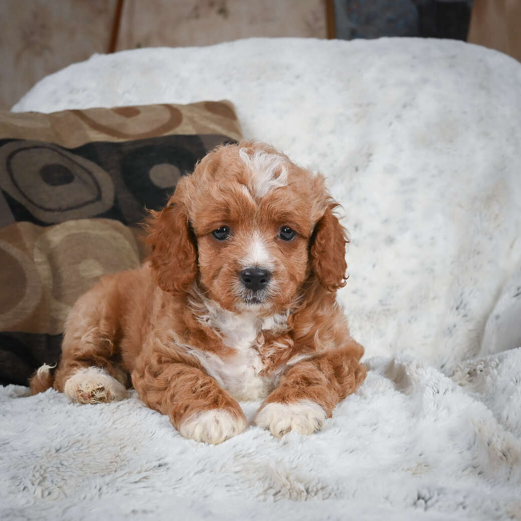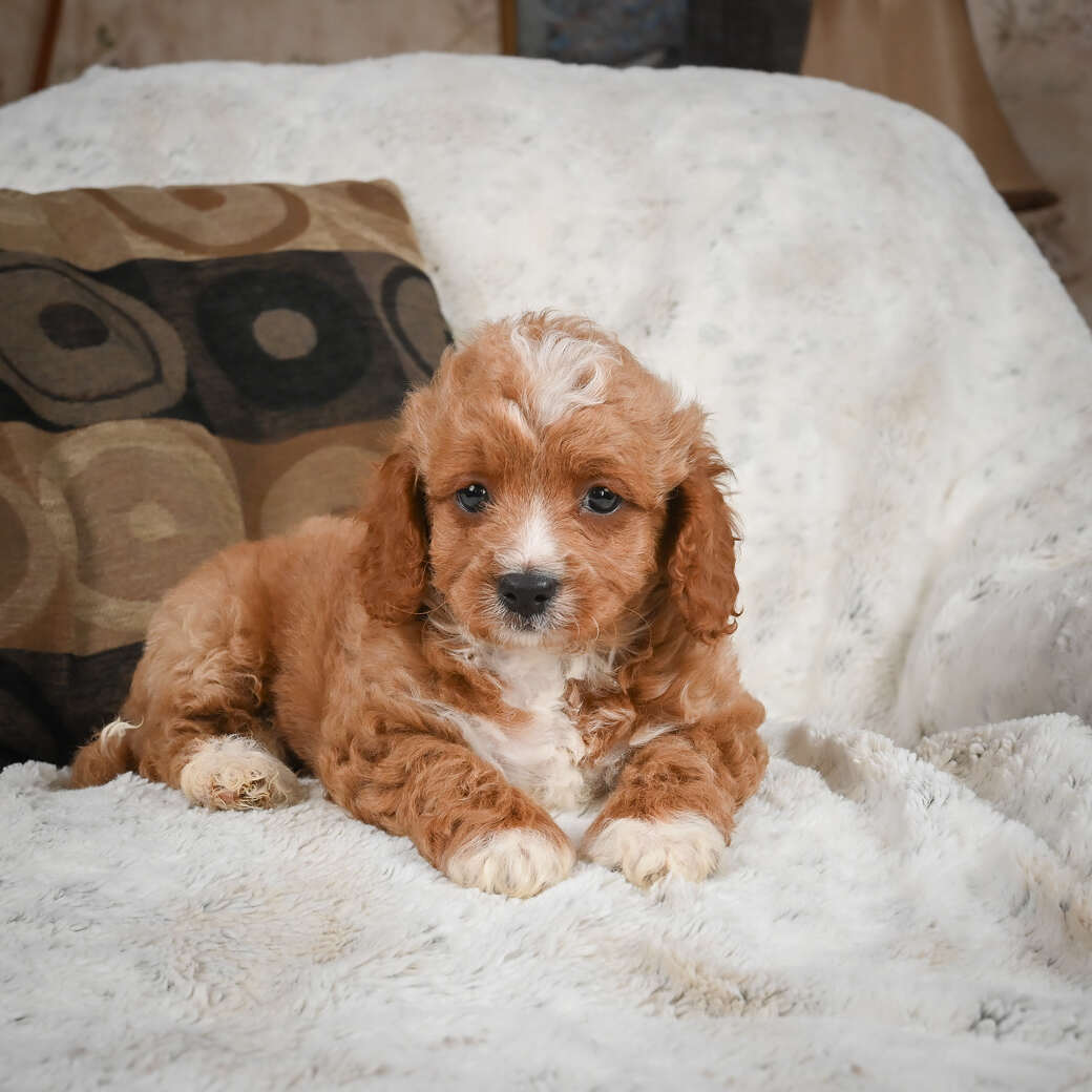 Este Cavapoo F1b es dulce, juguetón y perfecto para brazos, sofá y corazones sensibles.