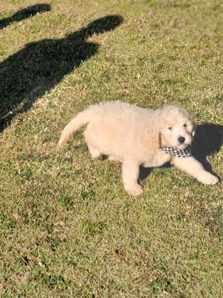 Chase is a Standard Goldendoodle puppy. Chase is both smart and playful and is so full of energy he can play all day long. He can turn any day into a day full of fun and adventure. He is the type of puppy that even in his sleep, he is playing and having fun. One of his favorite things to do is to cuddle and give lots of kisses. Chase is a wonderful pup and will be sure to bring a smile on anyone’s face.