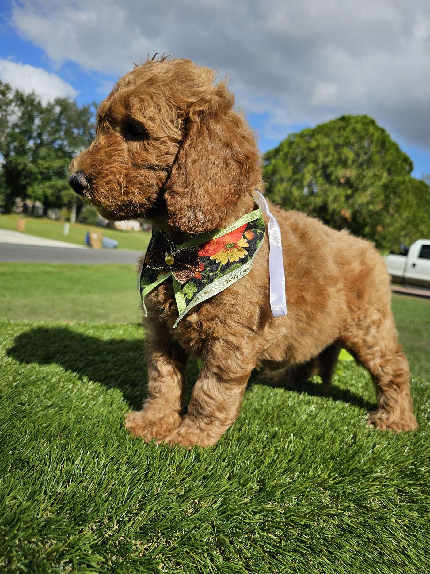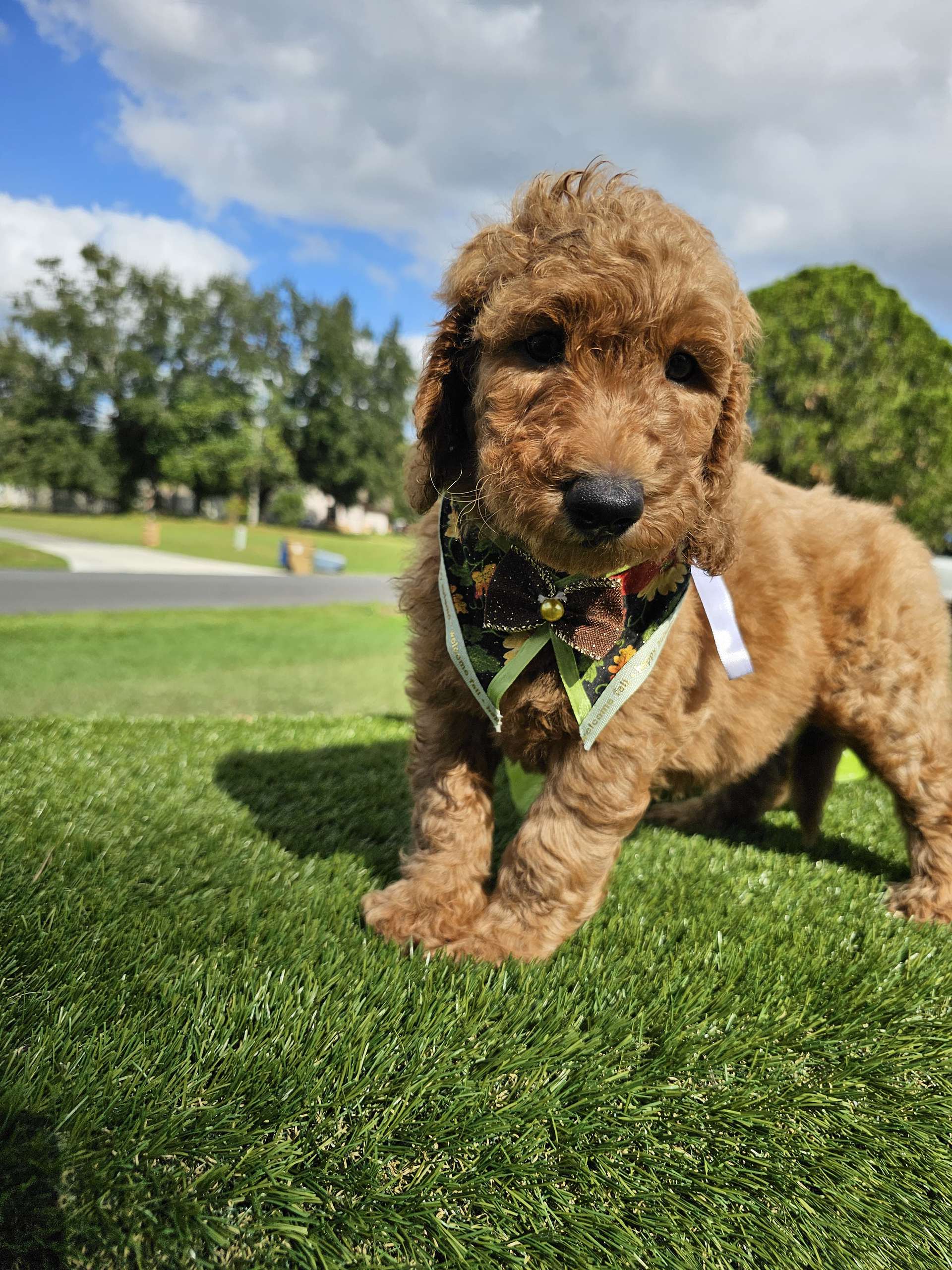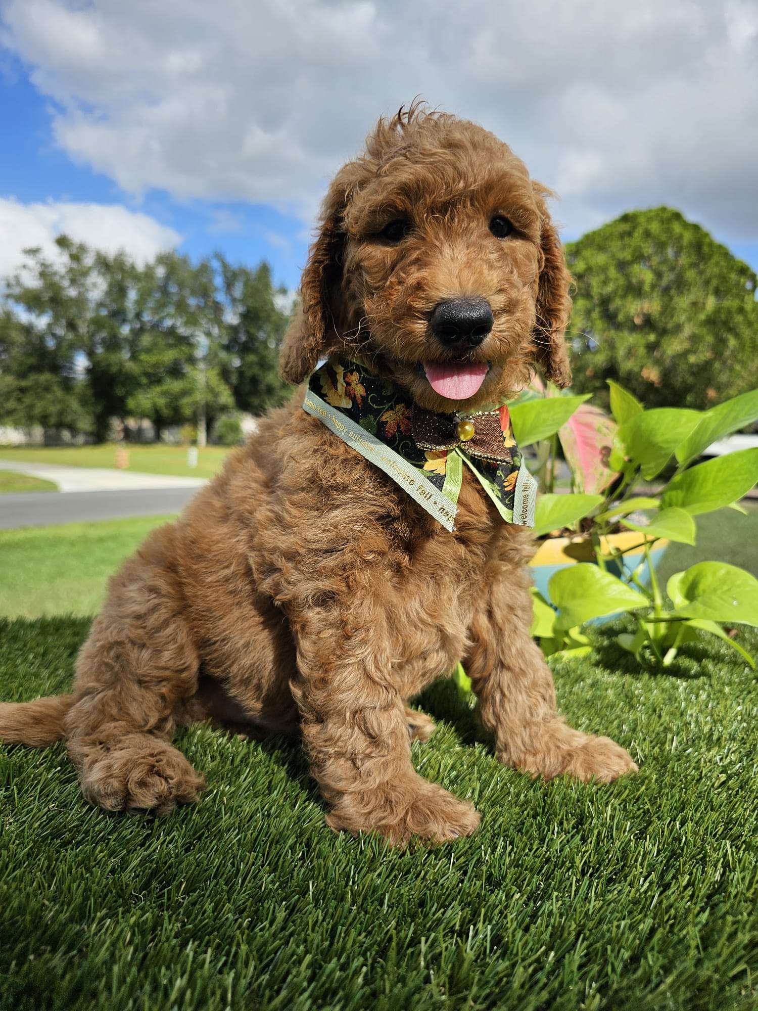 This is Archie a medium sized Goldendoodle puppy with an incredible personality. Archie has tried the single life and now wants to be part of a family. He is a superb little boy who loves absolutely everyone and everything and will fit into a home where he has ample opportunity to share his affectionate nature. Archie is the perfect gift for any occasion and will make anyone’s day. If you want to welcome him to your family, you can visit our website at https://goldendoodlesbyaggie.com/available-pups/ or text us at (407) 655-6285