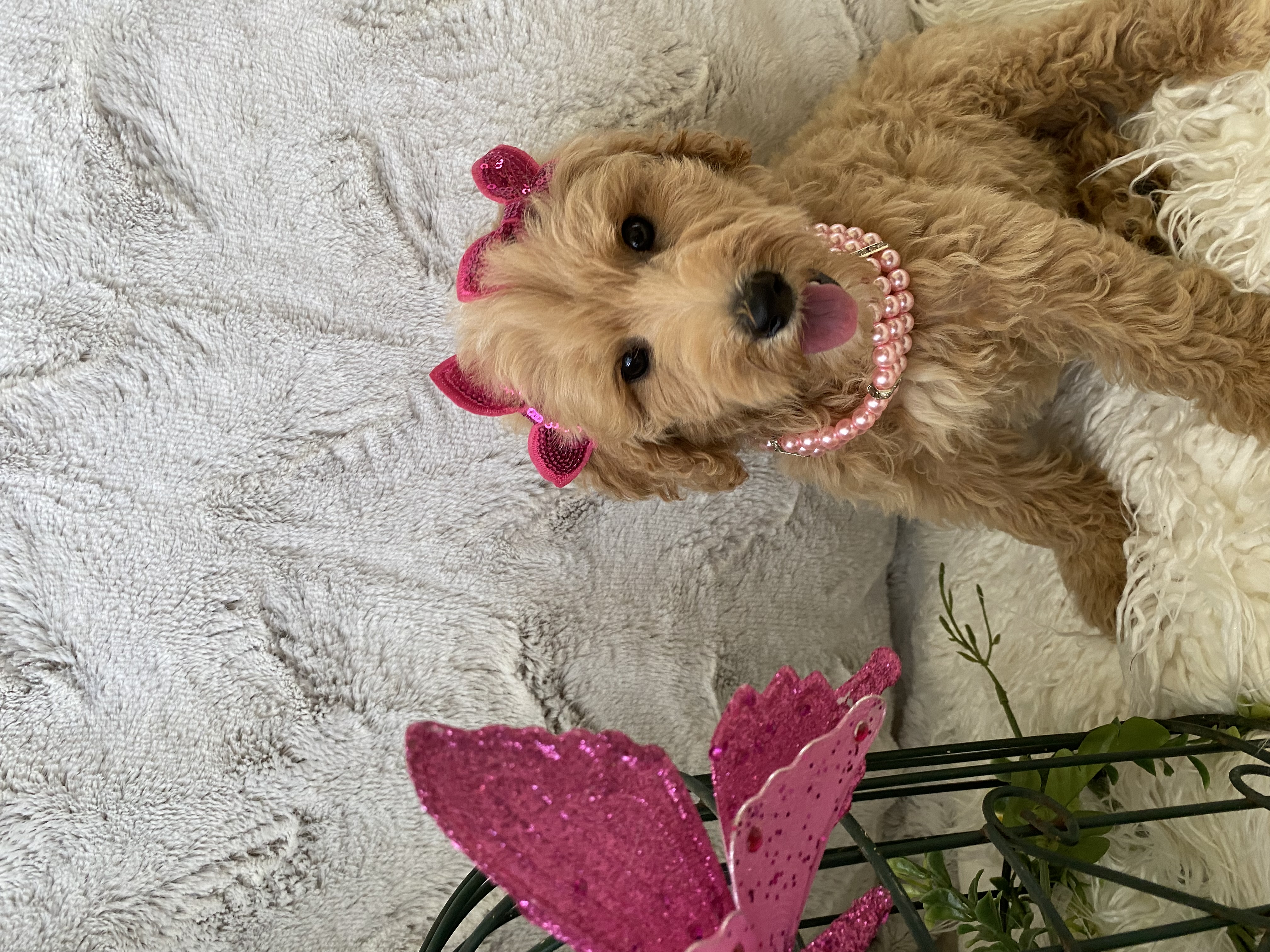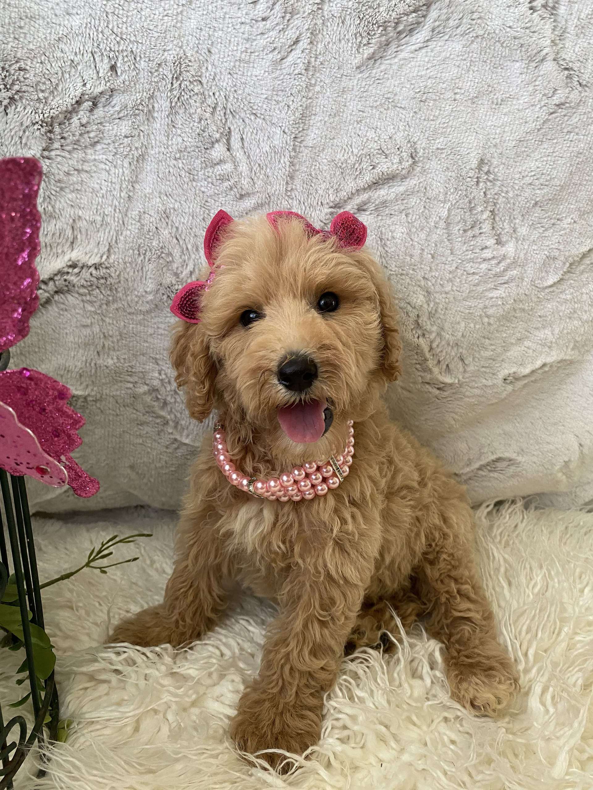 Whatever you’re doing, that’s where Chantal wants to be! Chantal is a medium sized Goldendoodle girl who’ll need a daily walk and a bit of a yard. If you’re looking for a sweet side-kick, then Chantal is the girl for you. She’s the most loyal and friendly pup you’ll ever meet. If you want to welcome her to your family you can visit our website at https://goldendoodlesbyaggie.com/available-pups/ or text us at (407) 655-6285