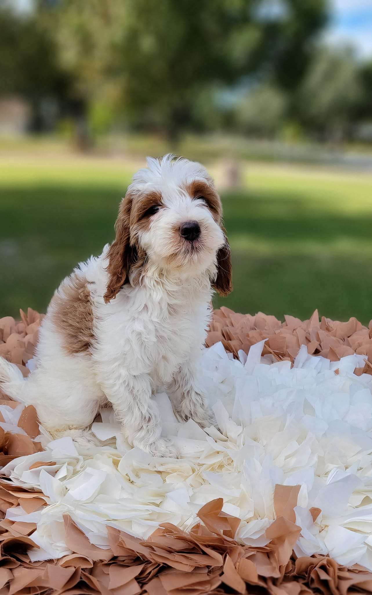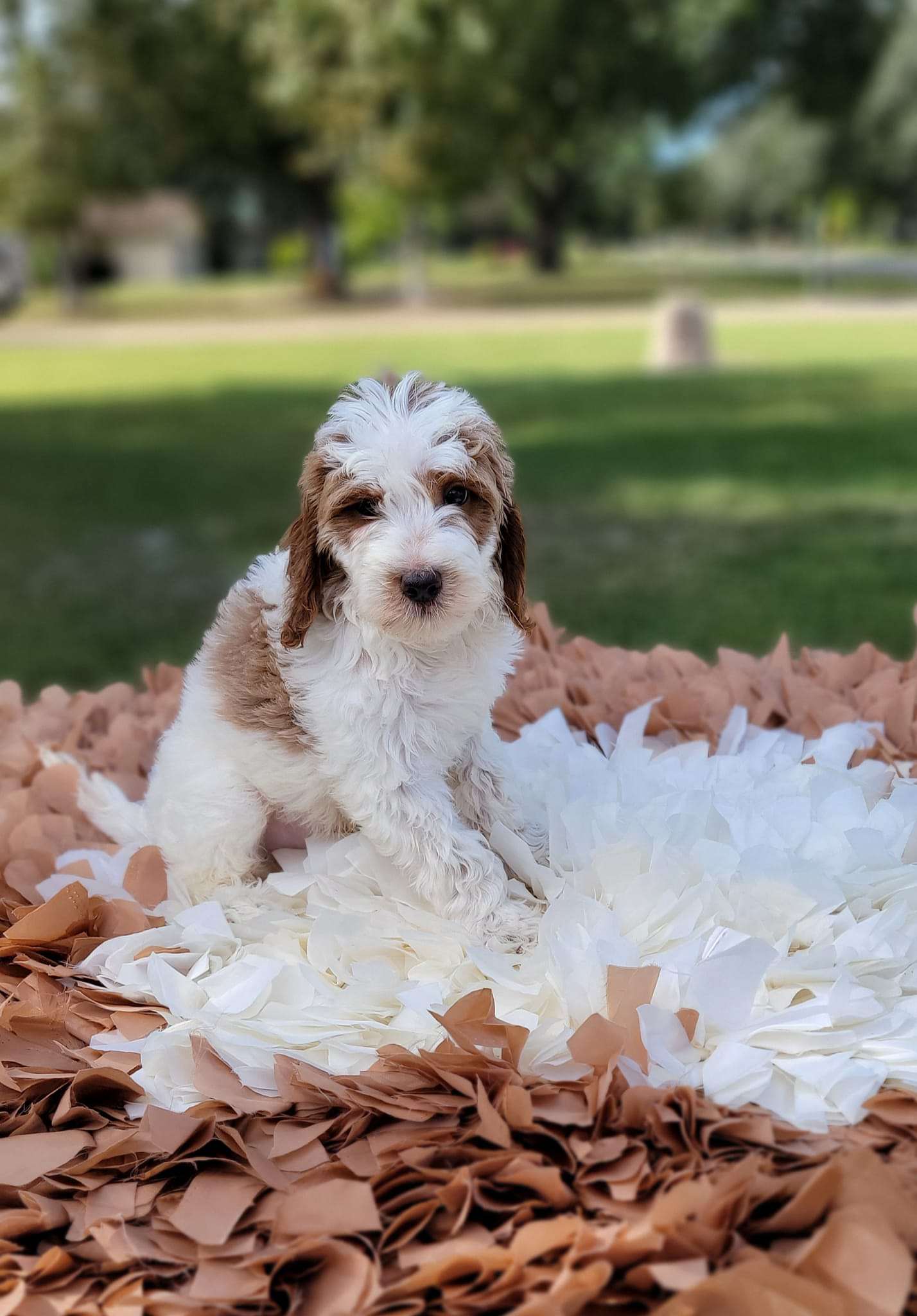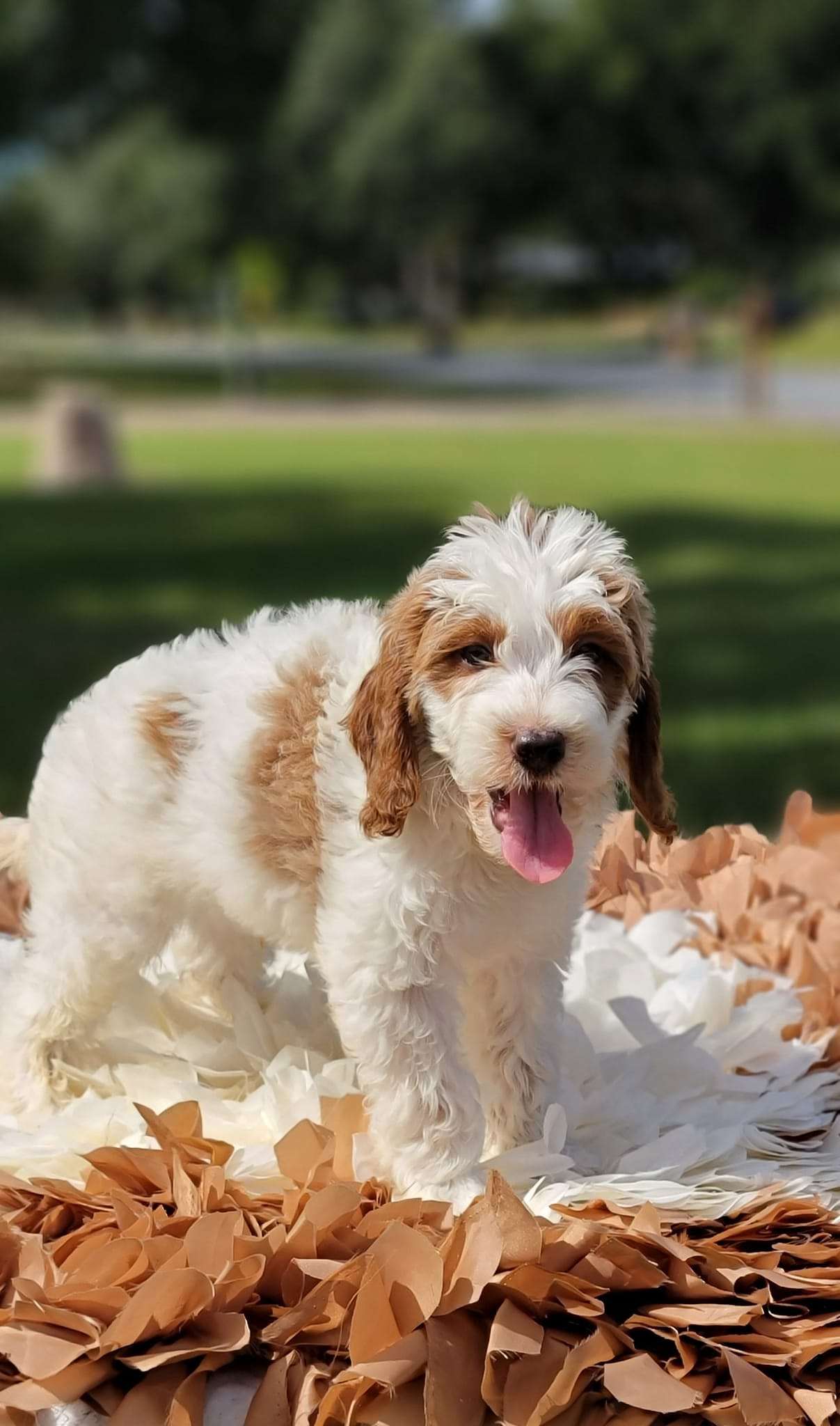 Kobi is a Medium sized Goldendoodle puppy. Kobi is the perfect partner for adventures since he loves to play games, do tricks and play hide and seek. Every moment you spend with Kobi will be perfect and he will be your partner in crime at all times. He is very docile and gets along very well with children and other animals. If you want to welcome him to your family, you can visit our website at https://goldendoodlesbyaggie.com/available-pups/ or text us at (407) 655-6285