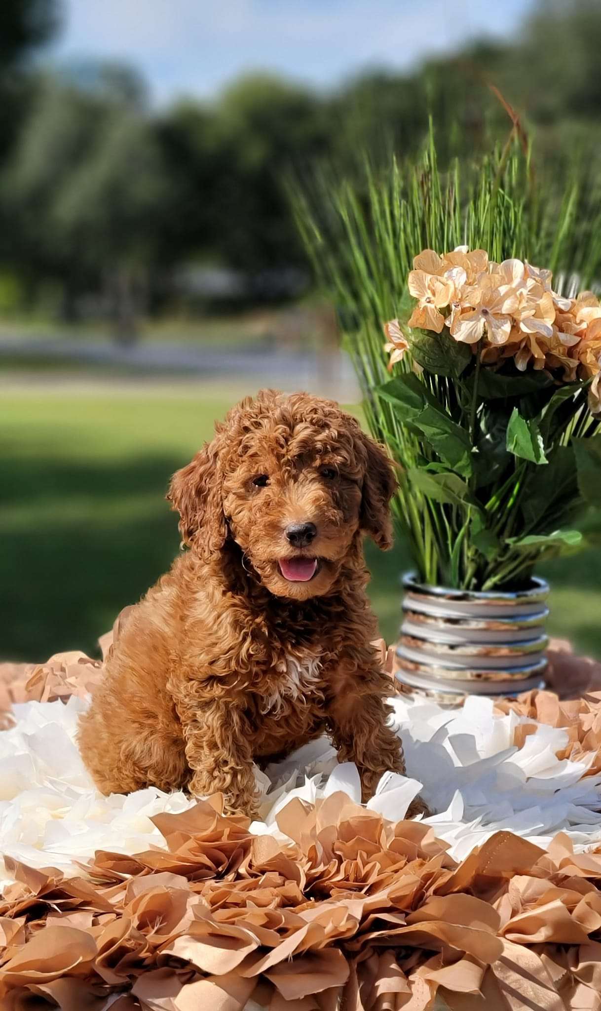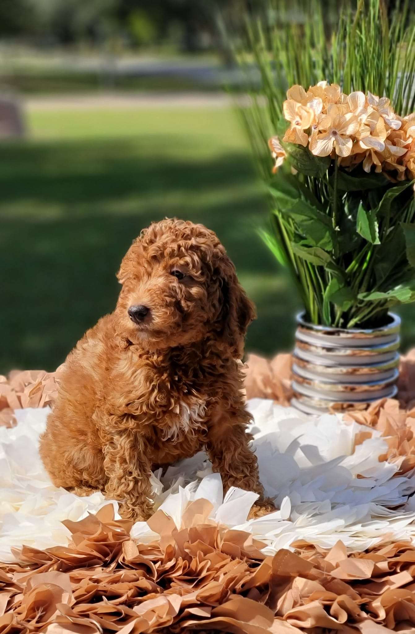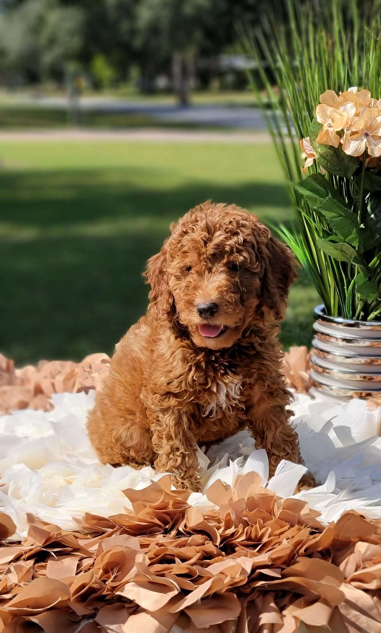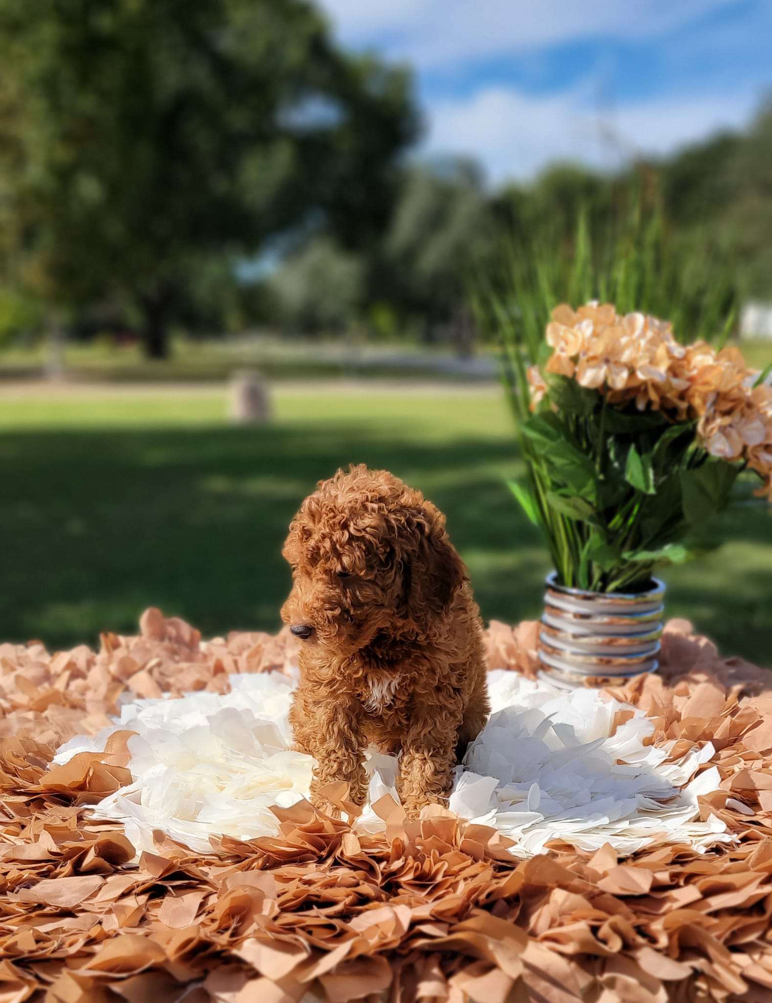 Paco is a Medium sized Goldendoodle puppy. He is a stunning example of a Goldendoodle, Paco is just one big smiling face waiting to give you a lick hello. Obedient and friendly with people and other dogs, life is all about finding someone to throw the ball and tug-of-war. He’d love a new family who will be as loyal to him as he will to them and give him all the love he deserves.