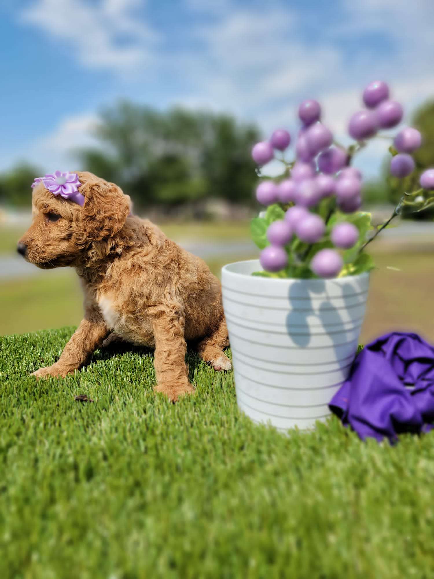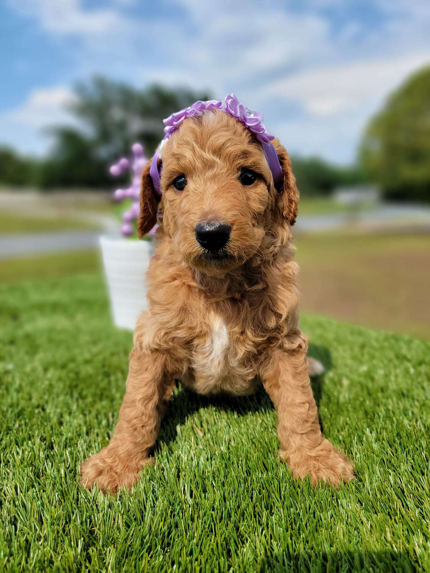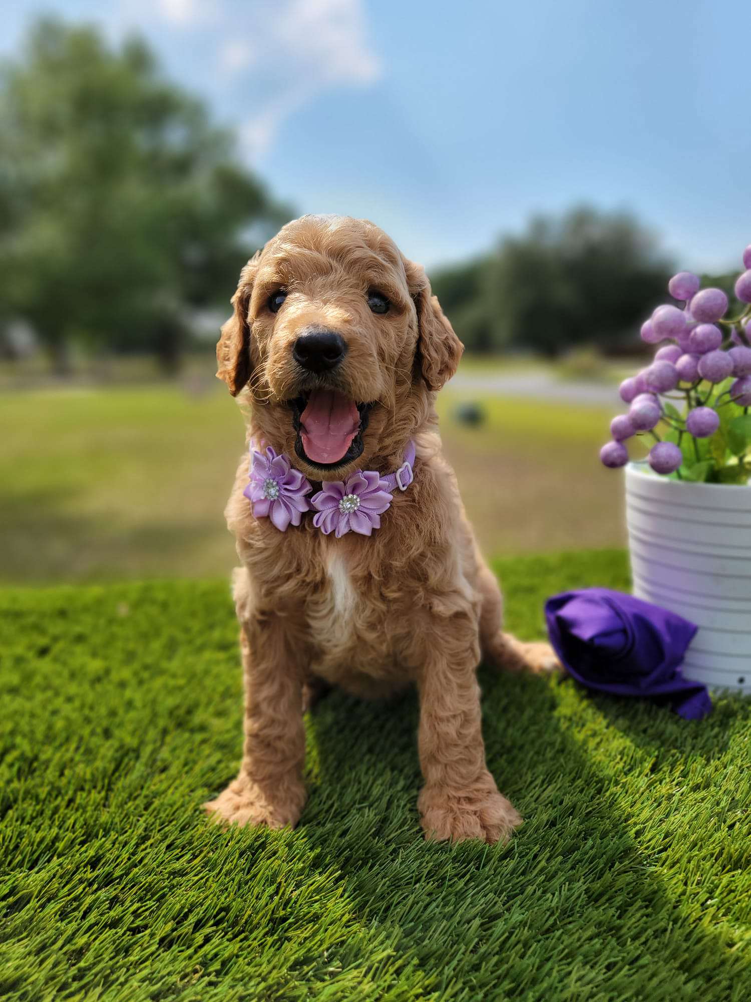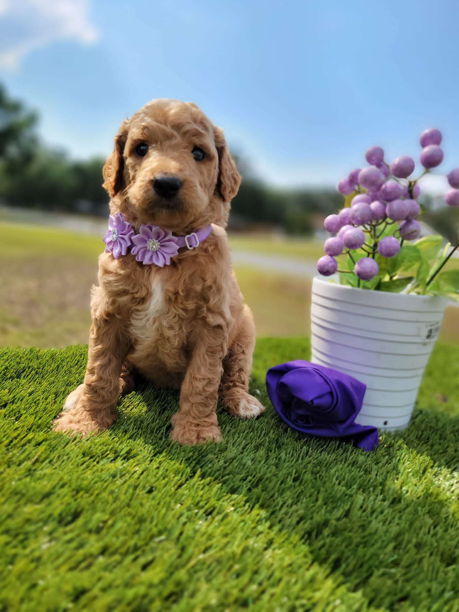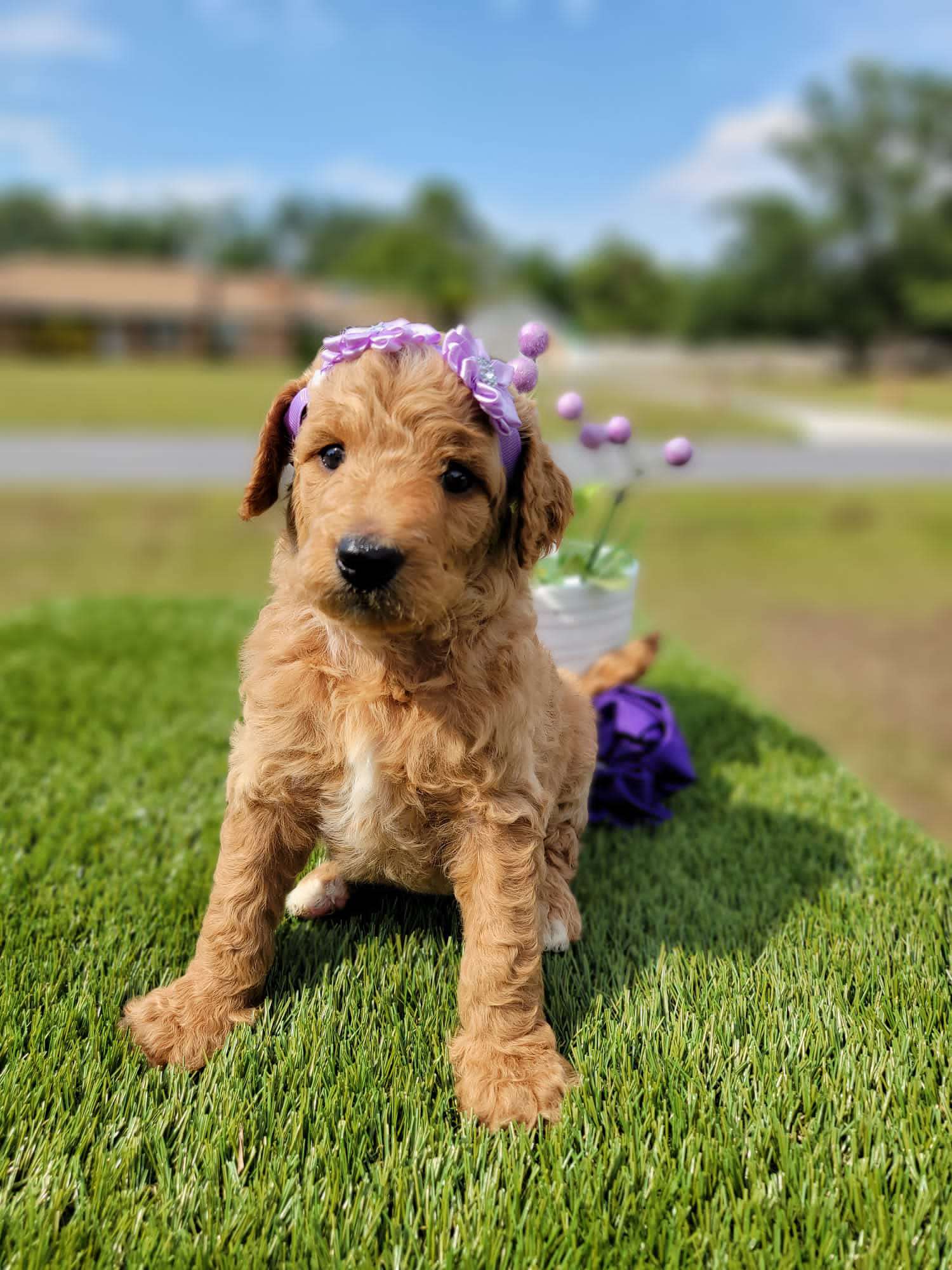 Hello, my name is Zuri and I’m a Medium sized Goldendoodle Puppy. I am a friendly happy girl with a fairly laidback nature looking for relaxation, yummy food and lots of love. I would love to binge watch movies with you, do you have a couch with my name on it? I will make a lovely companion and promise to give you lots of love and kisses. If you want to welcome her to your family, you can visit our website at https://goldendoodlesbyaggie.com/available-pups/ or text us at (407) 655-6285
