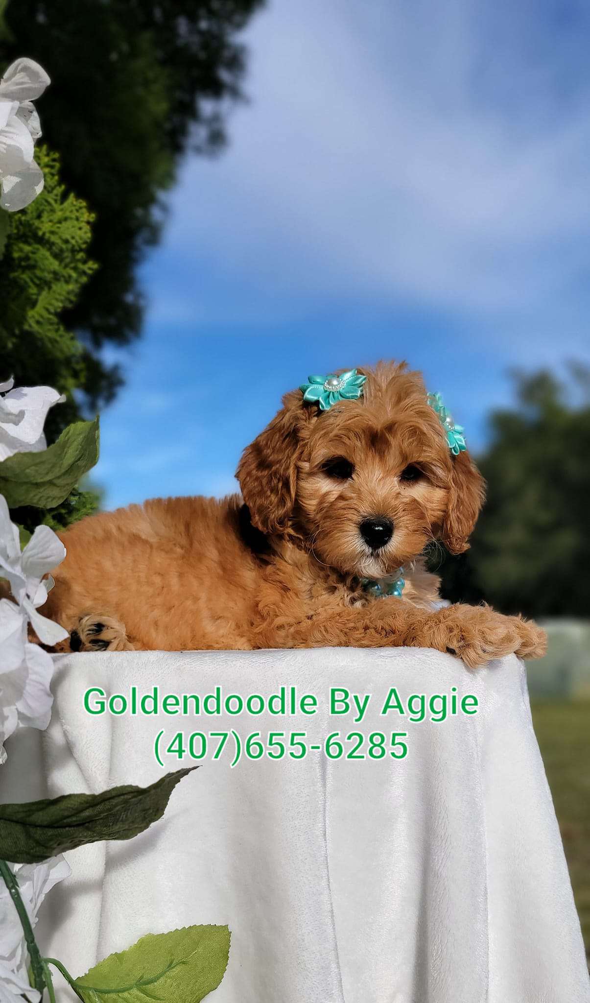 Let Mini Tori teach you how to have fun! A happy, friendly girl, who is an adorable softy and loves to be involved in daily life. Mini Tori has so much energy and loves to zoom around the backyard to her hearts content. she’s looking for a new home where she share all the love she has and give endless kisses. If you want to welcome her to your family you can visit our website at https://goldendoodlesbyaggie.com/available-pups/ or text us at (407) 655-6285