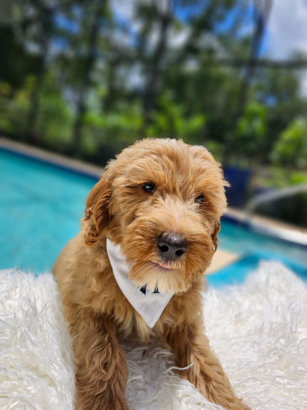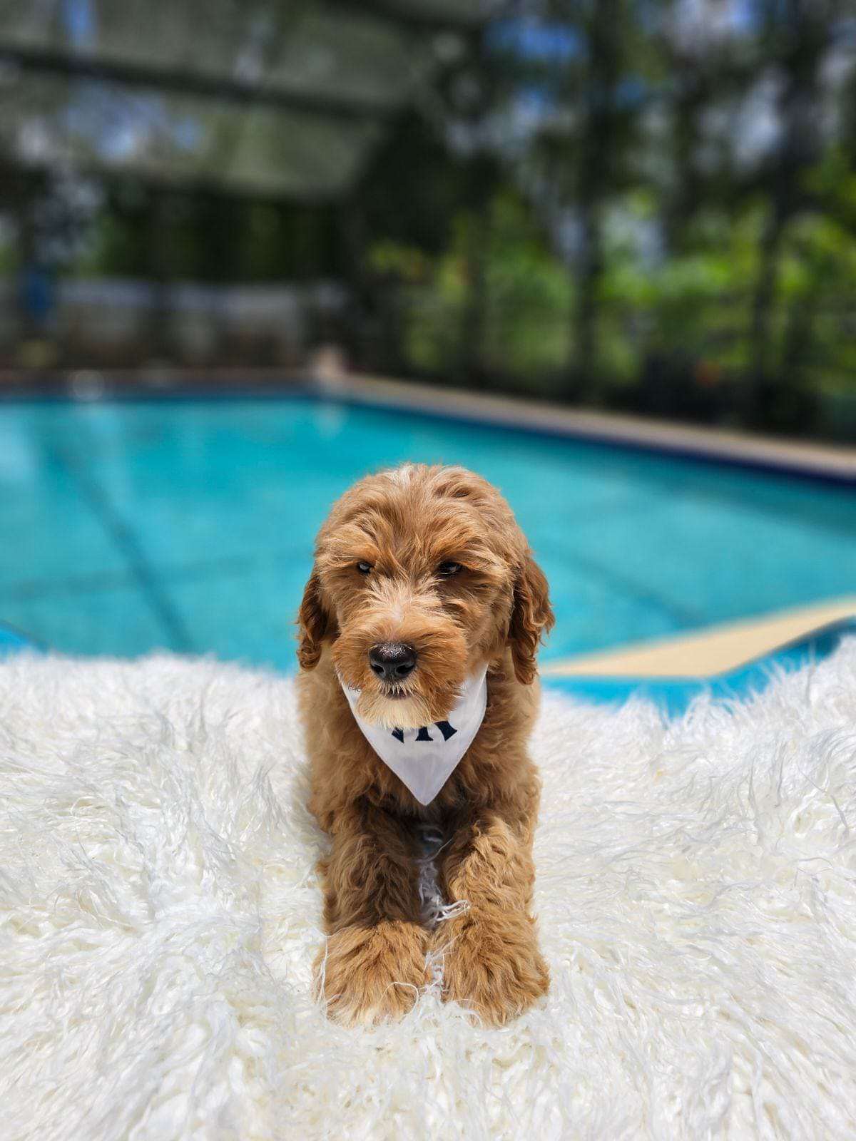 This is Armani he’s a standard Goldendoodle boy. Don’t let his little shy face fool you, he’s filled with loads of energy & fun. Armani definitely is the life of the party. He makes no exceptions, loves all creatures from the smallest to the biggest. He’s just overflowing with love and can’t contain it any longer. Armani will be an excellent addition to your family and fill your life with love and joy. If you want to welcome him to your family you can visit our website at https://goldendoodlesbyaggie.com/available-pups/ or text us at (407) 655-6285
