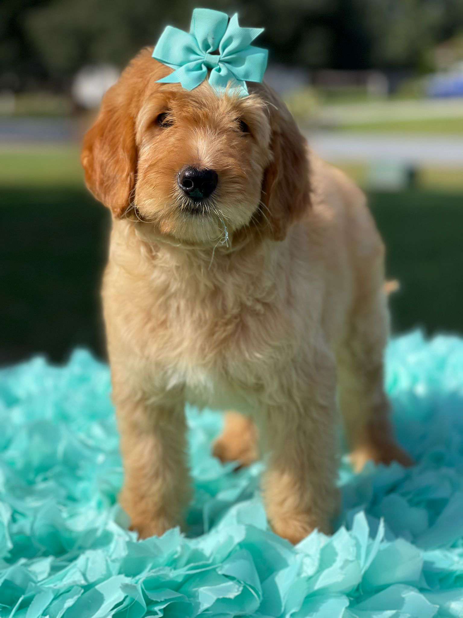 Avery is a Standard sized Goldendoodle puppy. She loves to be healthy and exercise is a lot of fun for her. She loves to jump rope, run, avoid obstacles and make races to the finish line. If you want to welcome her to your family, you can visit our website at https://goldendoodlesbyaggie.com/available-pups/ or text us at (407) 655-6285
