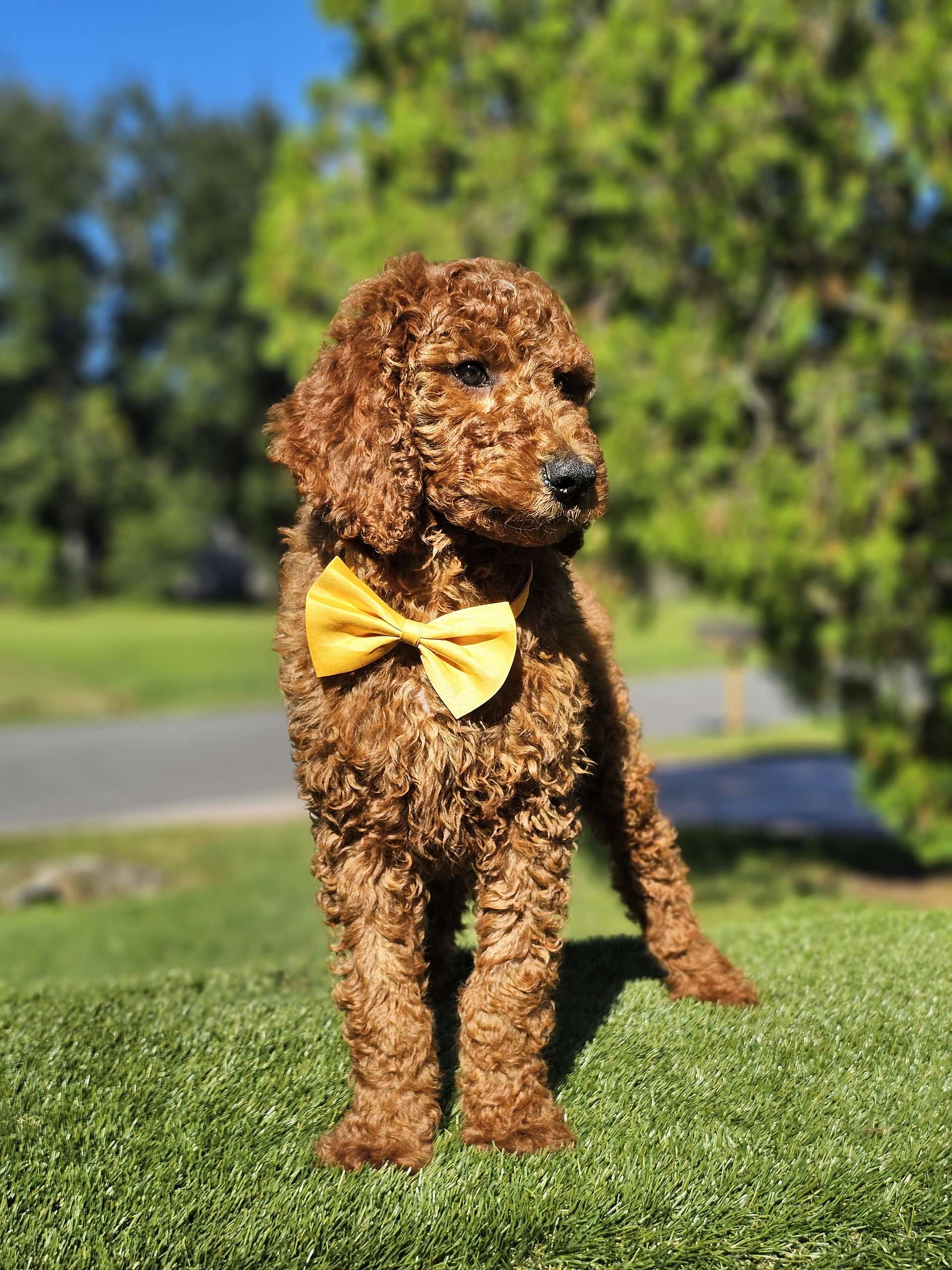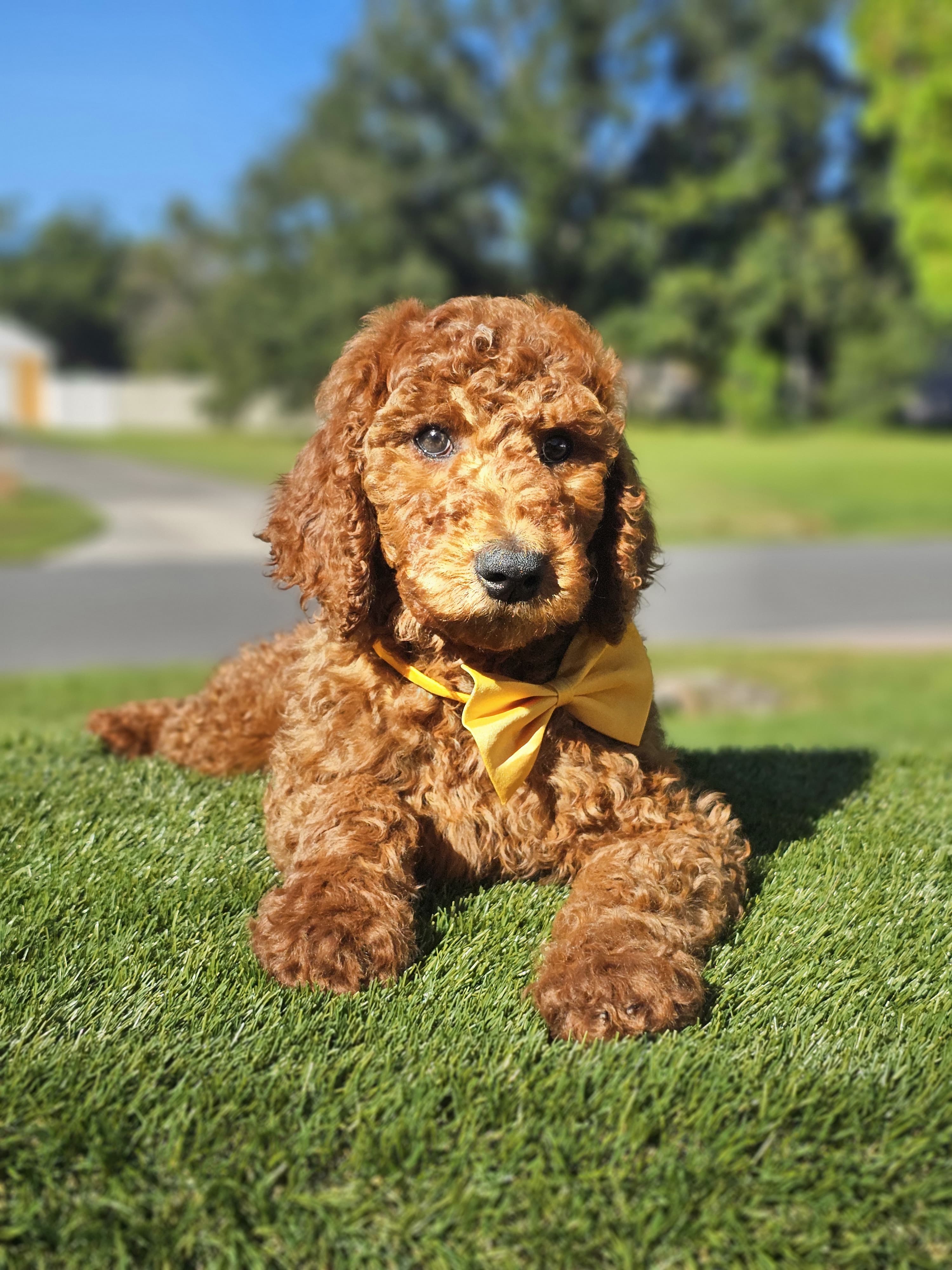“Say hello to endless sunshine and smiles with Finnigan! This handsome Red Standard Goldendoodle F1b is a walking ray of fluffy happiness, ready to bring a burst of playful energy into your life. With his Mahogany curls and cheerful personality, he’s the perfect new addition to brighten anyone’s day!”For more info call/text us (407)655-6285 or visit us at https://goldendoodlesbyaggie.com/available-pups