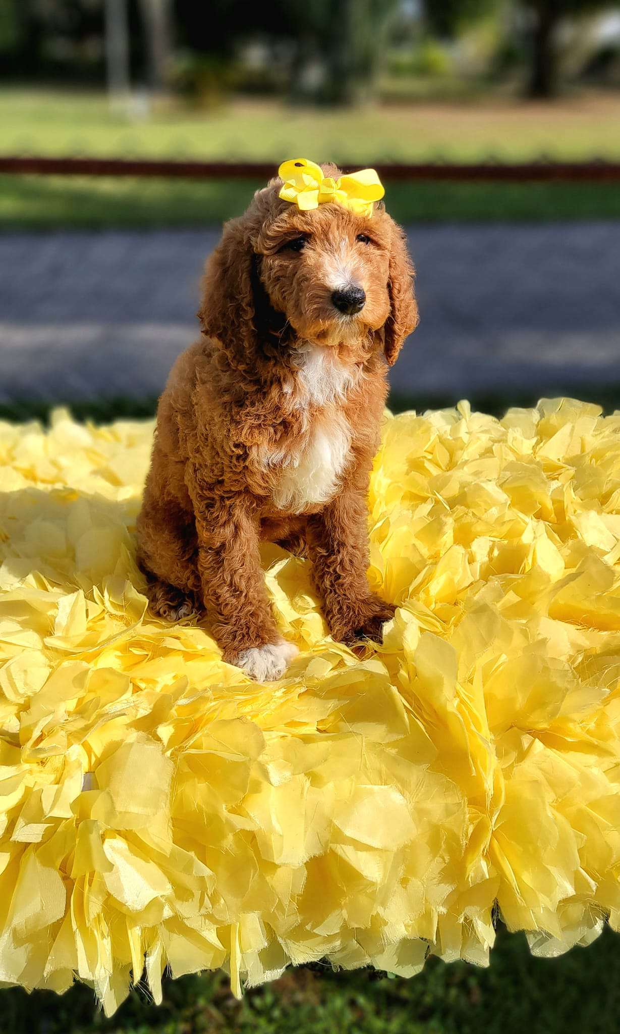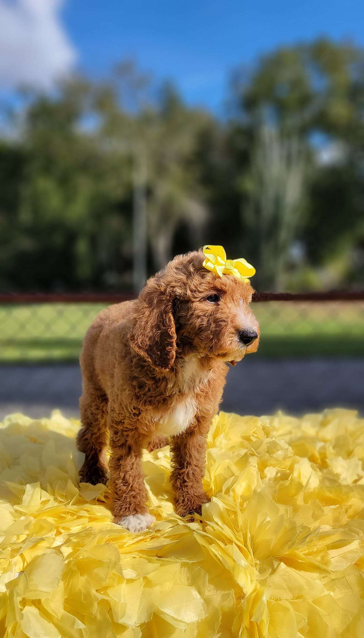 Irene is a Standard sized Poodle. Irene is a gorgeous, beautiful dog with a big smile. She’s great with new people and loves everyone she meets. She is looking for someone who loves tag and loves to play fetch. She loves walks in the park and is happy so long as she is with her family. She will make a fantastic and loving companion to any household. If you want to welcome her to your family you can visit our website at https://goldendoodlesbyaggie.com/available-pups/ or text us at (407) 655-6285