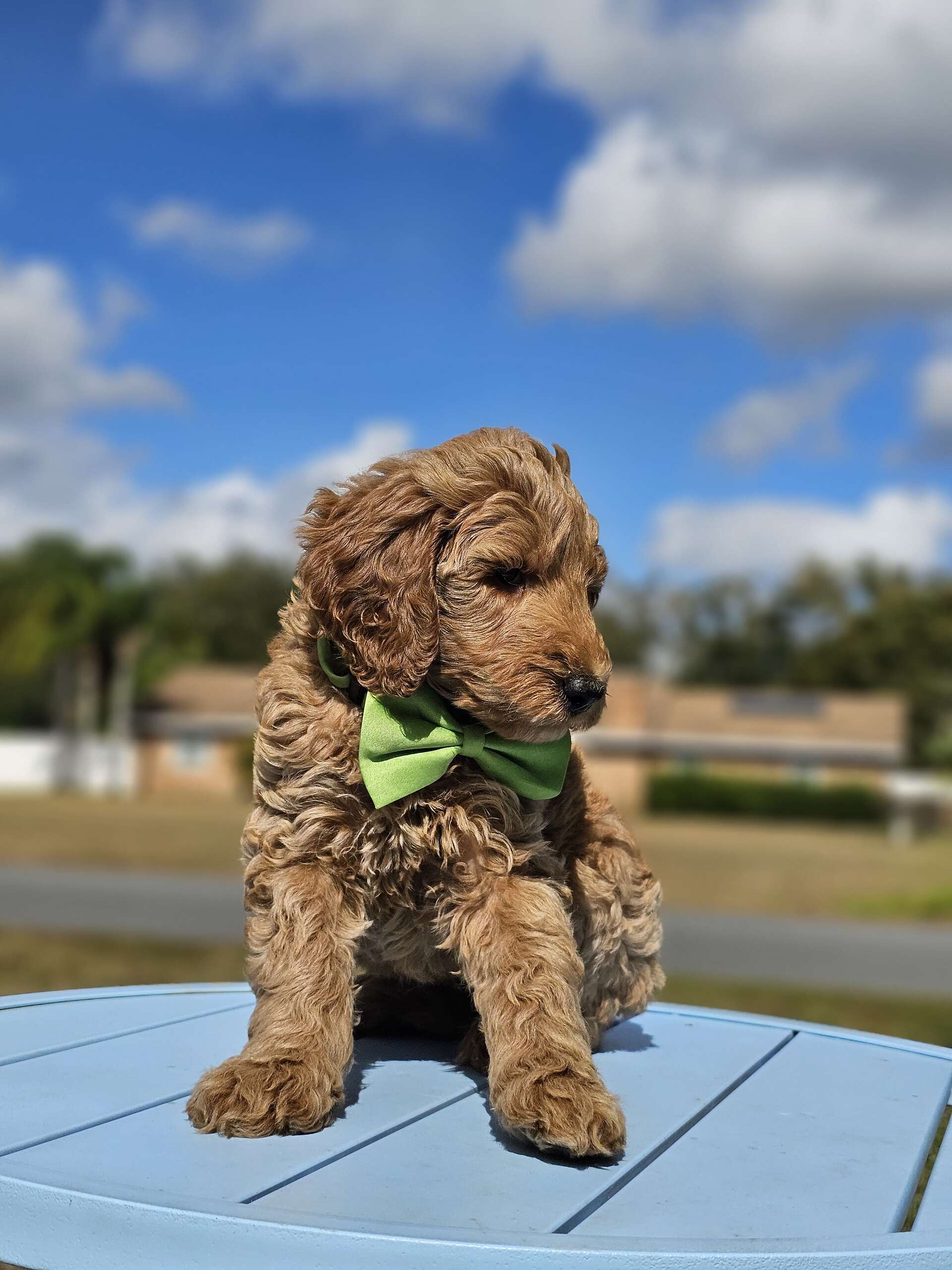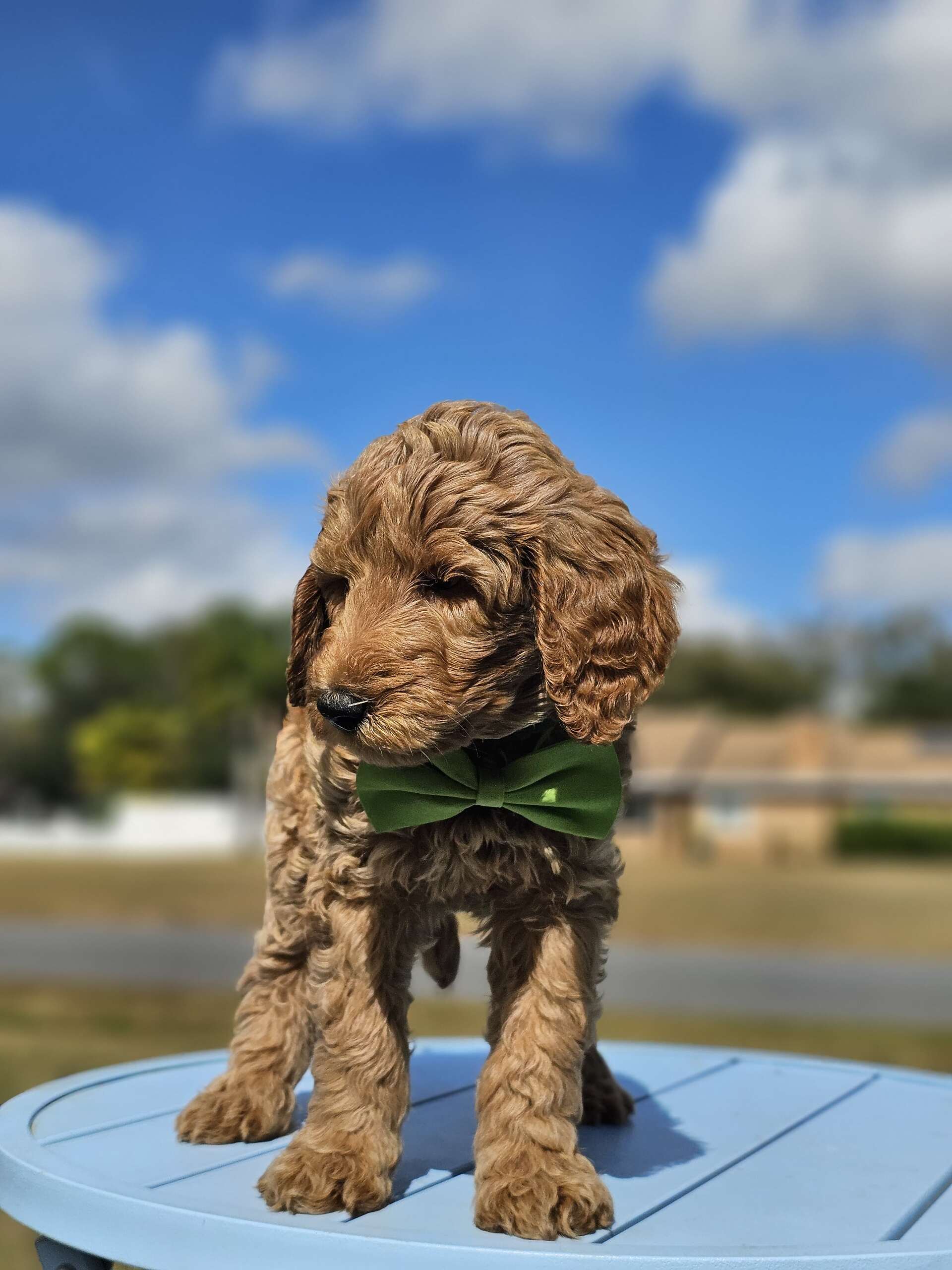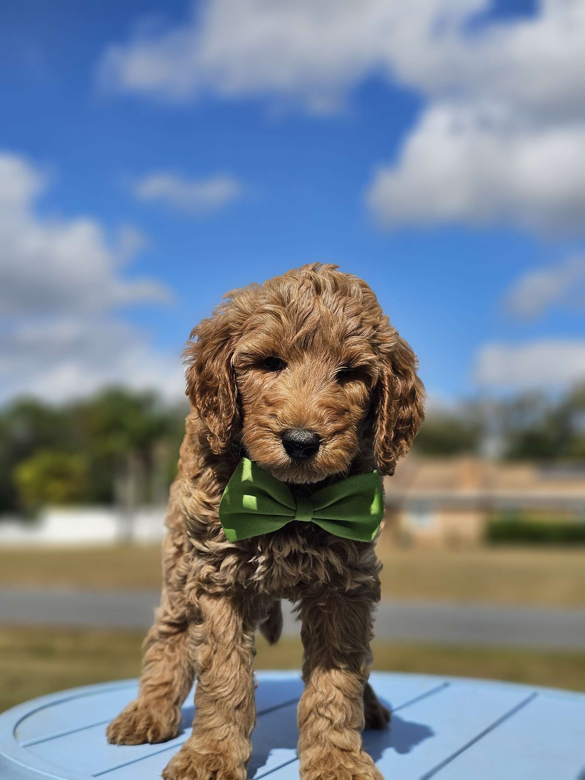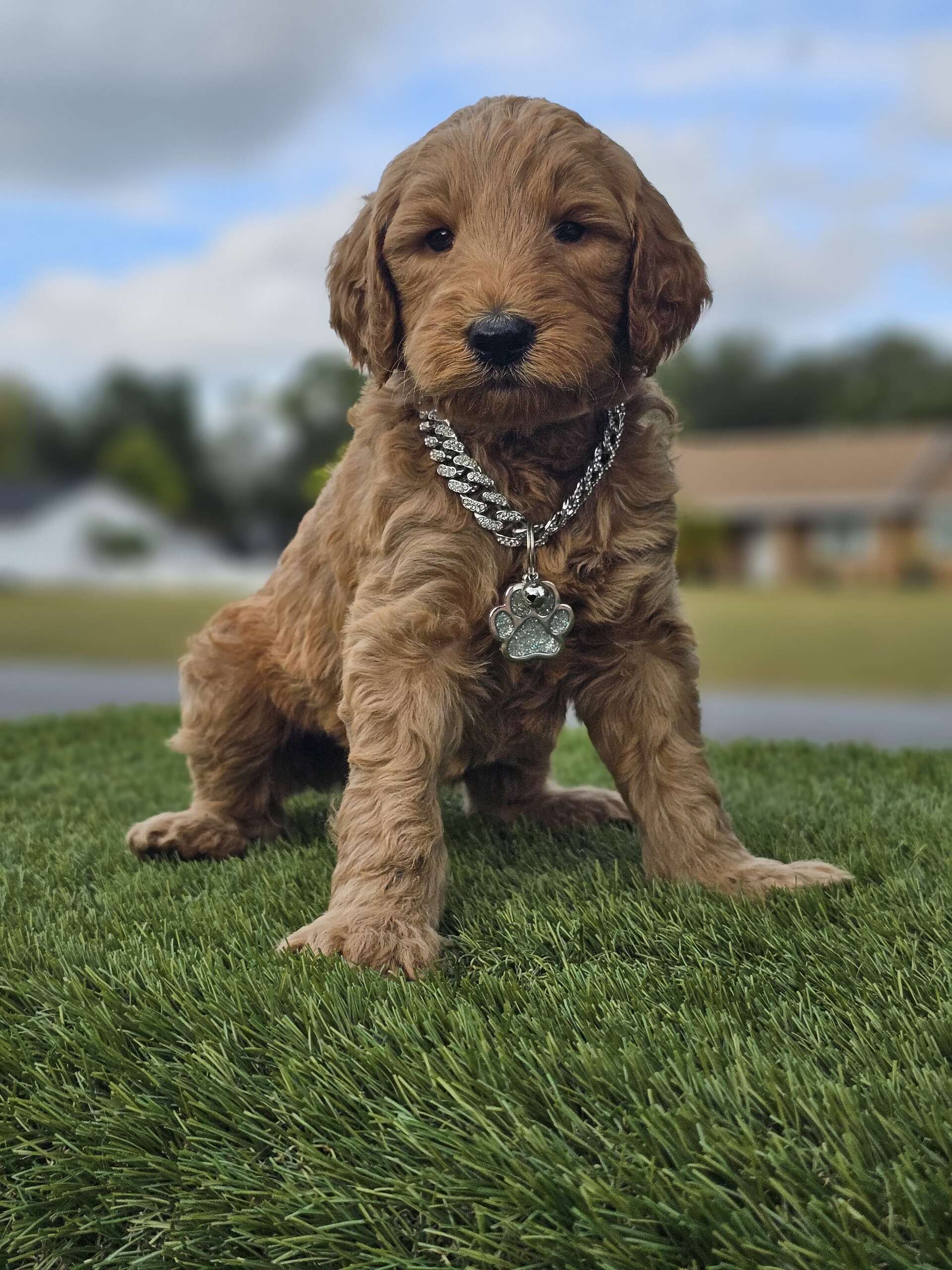 This standard male Goldendoodle brings full CEO energy with teddy-bear curls and a personality that steals the spotlight. Expected to grow to around 70 lbs, he’s confident, lovable, and always looks like he’s about to give a motivational speech… or take over the couch.