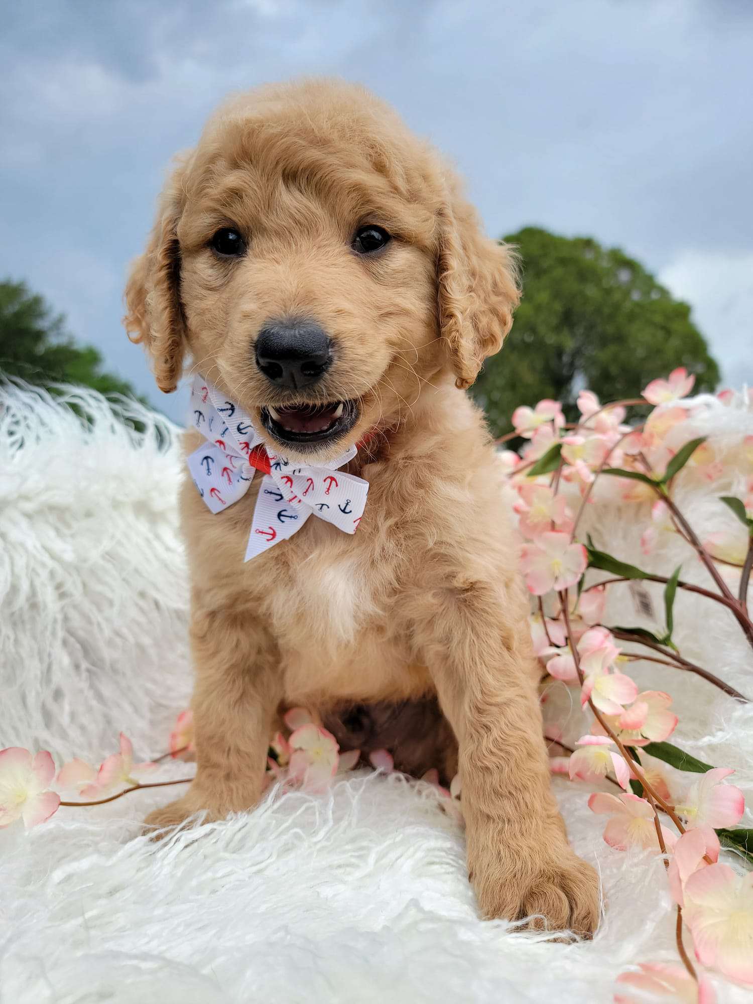 Hi my name is Kingsley! I am a standard Goldendoodle boy who is ready to take on adventure head on! I’d love to have a nice active family who I can go on walks with and simply enjoy life. I’m a great cuddler especially when it’s cold and windy out. I vow to be the best cuddle buddy ever and promise to love and cherish my family. If you want to welcome me to your family, you can visit our website at https://goldendoodlesbyaggie.com/available-pups/ or text us at (407) 655-6285