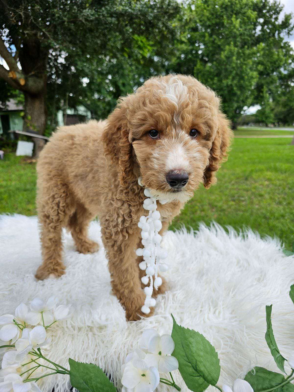 Maple is a standard male Goldendoodle. Nice cute, & cuddly as can be with the sweetest soul a puppy can have. Maple is good with other dogs, cats and is gentle with children.