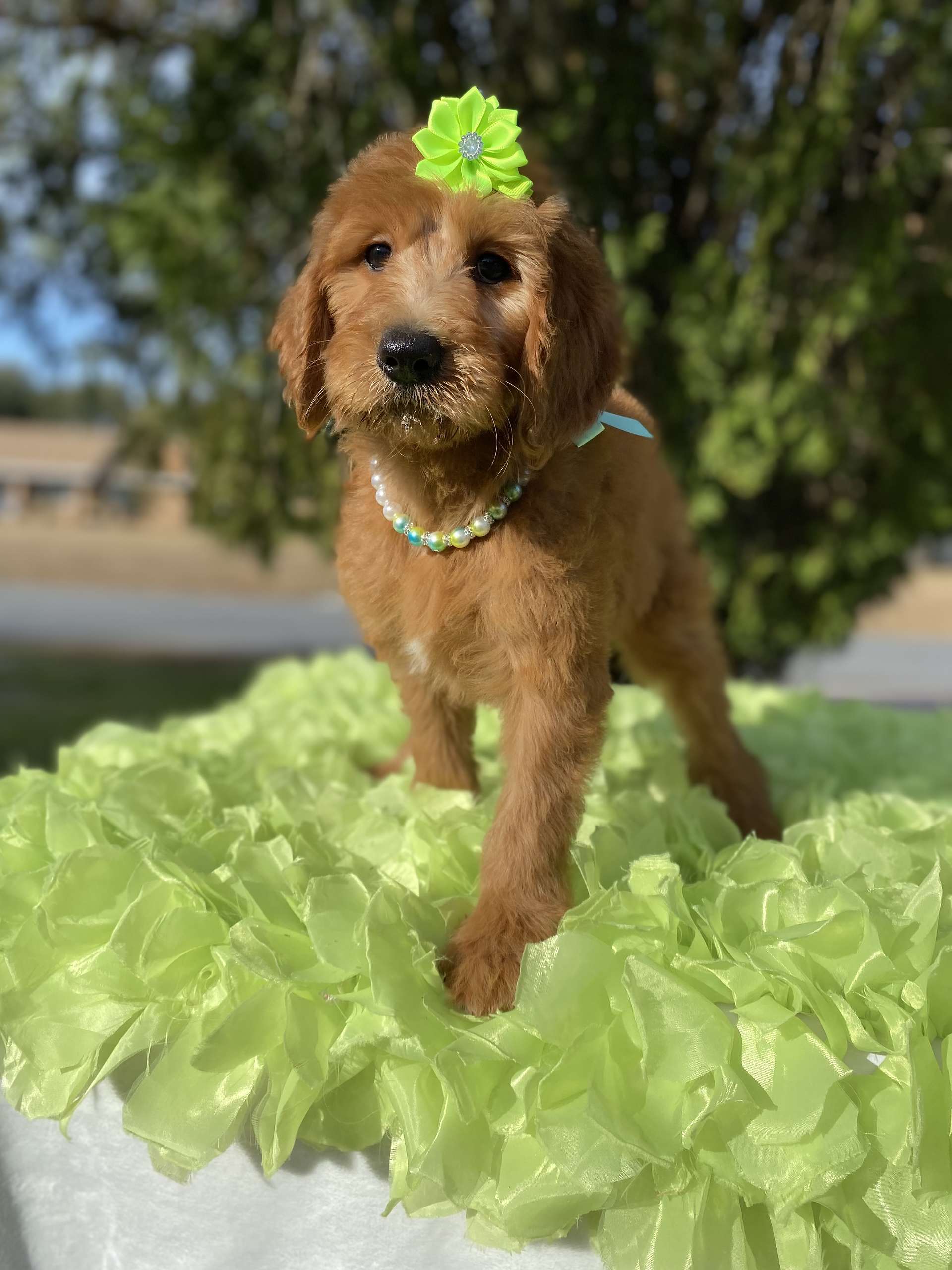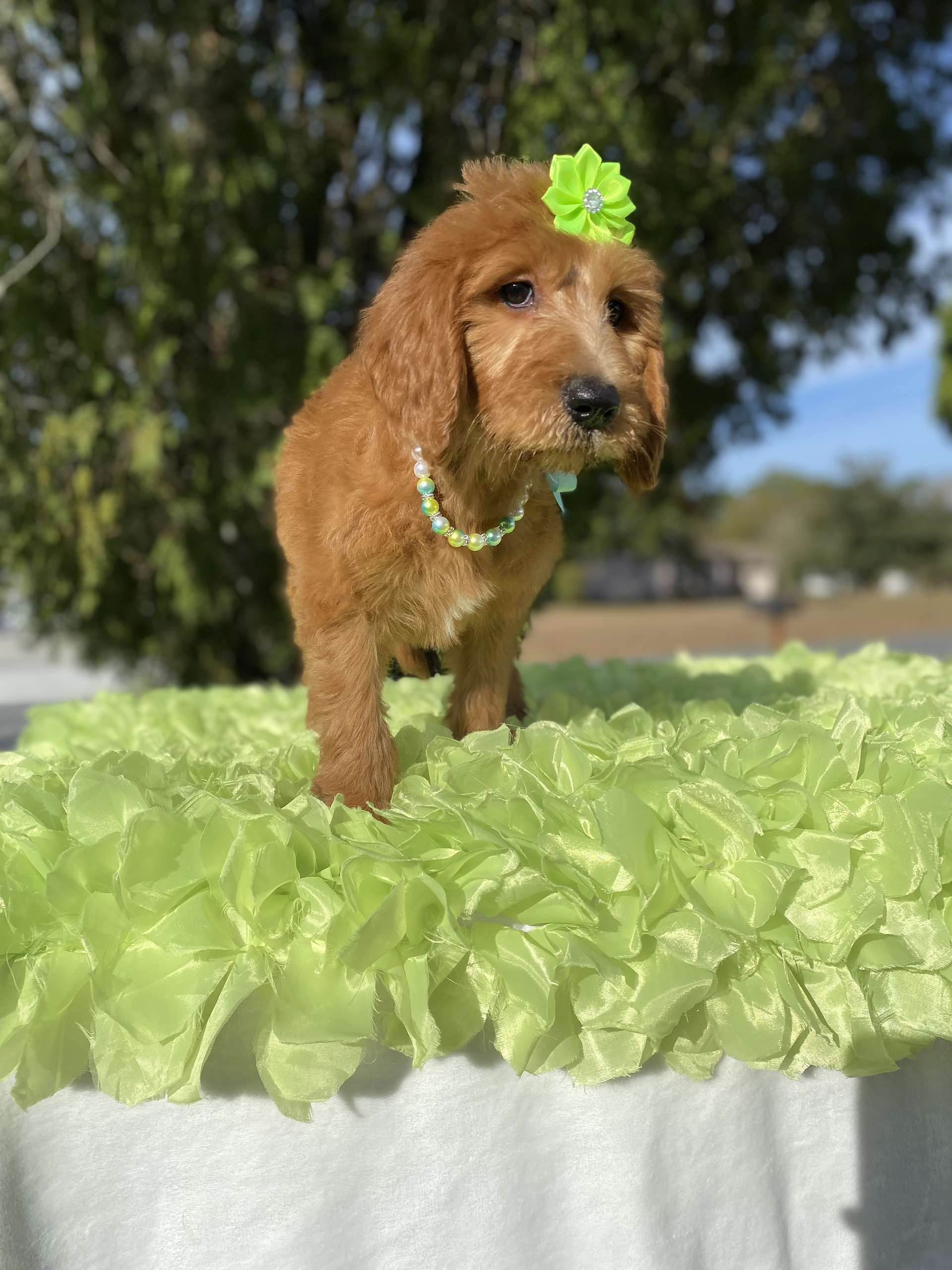 Meet Porcha! She’s an affectionate young Standard sized Goldendoodle looking for her forever home. Porcha is a curious little girl who would love further learning or activities to keep her brain ticking. She’s social with people of all ages and plays well with other animals. If you want to welcome her to your family, you can visit our website at https://goldendoodlesbyaggie.com/available-pups/ or text us at (407) 655-6285