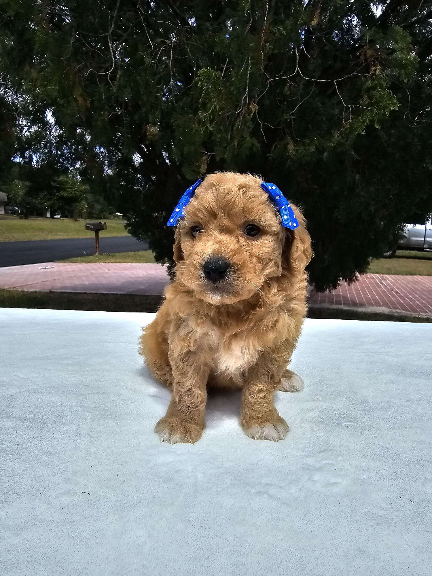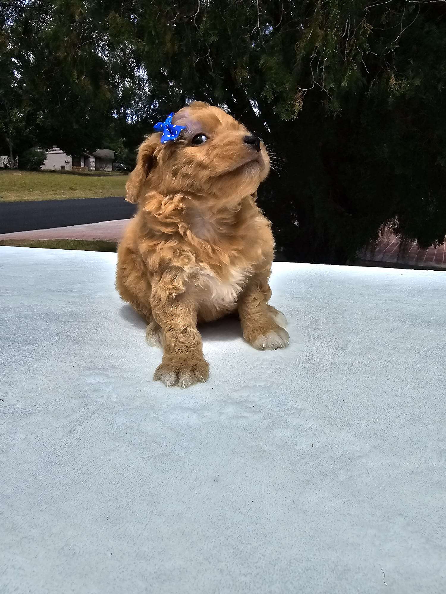 What a pretty little princess! Toy bubbles is a Toy Sized Goldendoodle Puppy. She is a sweet little girl who is bursting to please. Toy bubbles loves her ball, her toys and all her doggie friends. She is all around playful and sweet and will make any house hold fun and exciting. Such a lovely young girl who deserves a loving home and will reward her new family with loyalty and loads of affection. If you want to welcome her to your family, you can visit our website at https://goldendoodlesbyaggie.com/available-pups/ or text us at (407) 655-6285